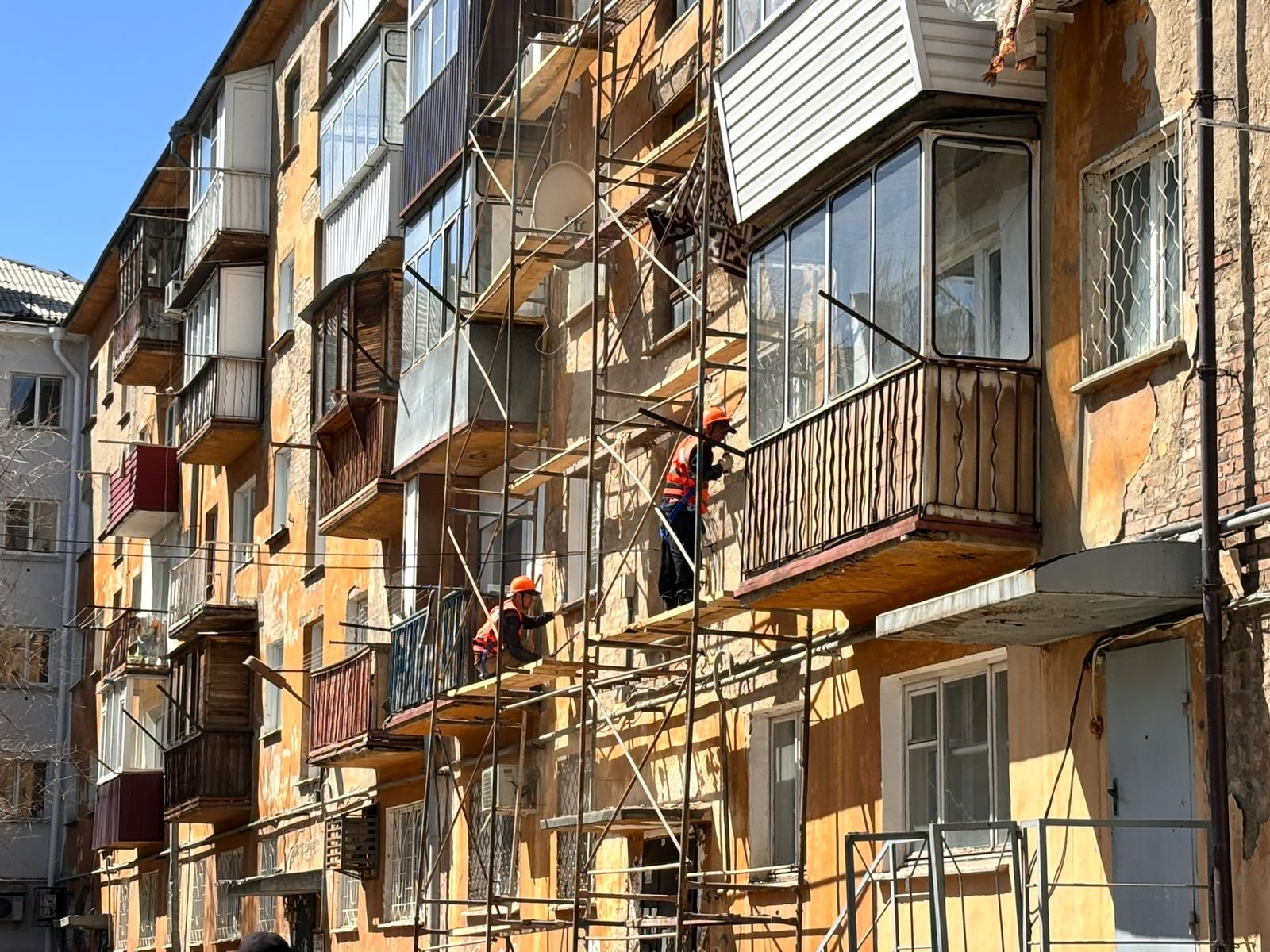 Өскеменде тұрғын үйлердің қасбетін жөндеп жатыр