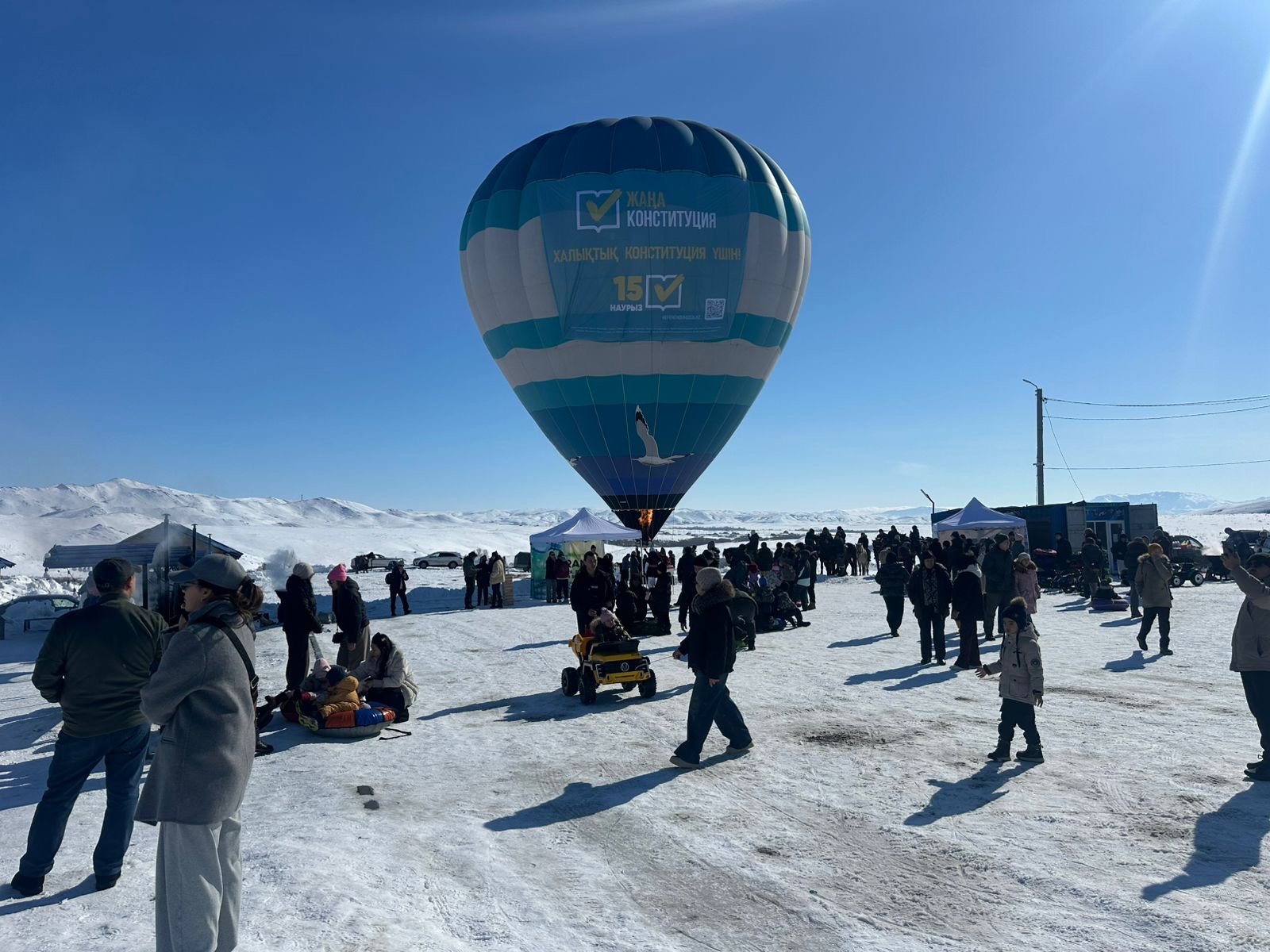 Қала кіреберісіндегі Шешек тауында жаңа Конституцияны қолдау мақсатында ұйымдастырылған «Отбасы