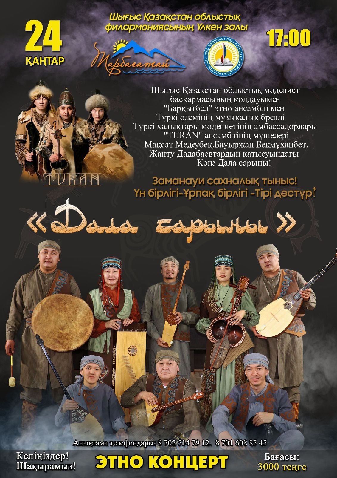 24 қаңтар сағат 17:00-де Шығыс Қазақстан облыстық филармониясының үлкен залында «Дала сарыны» атты